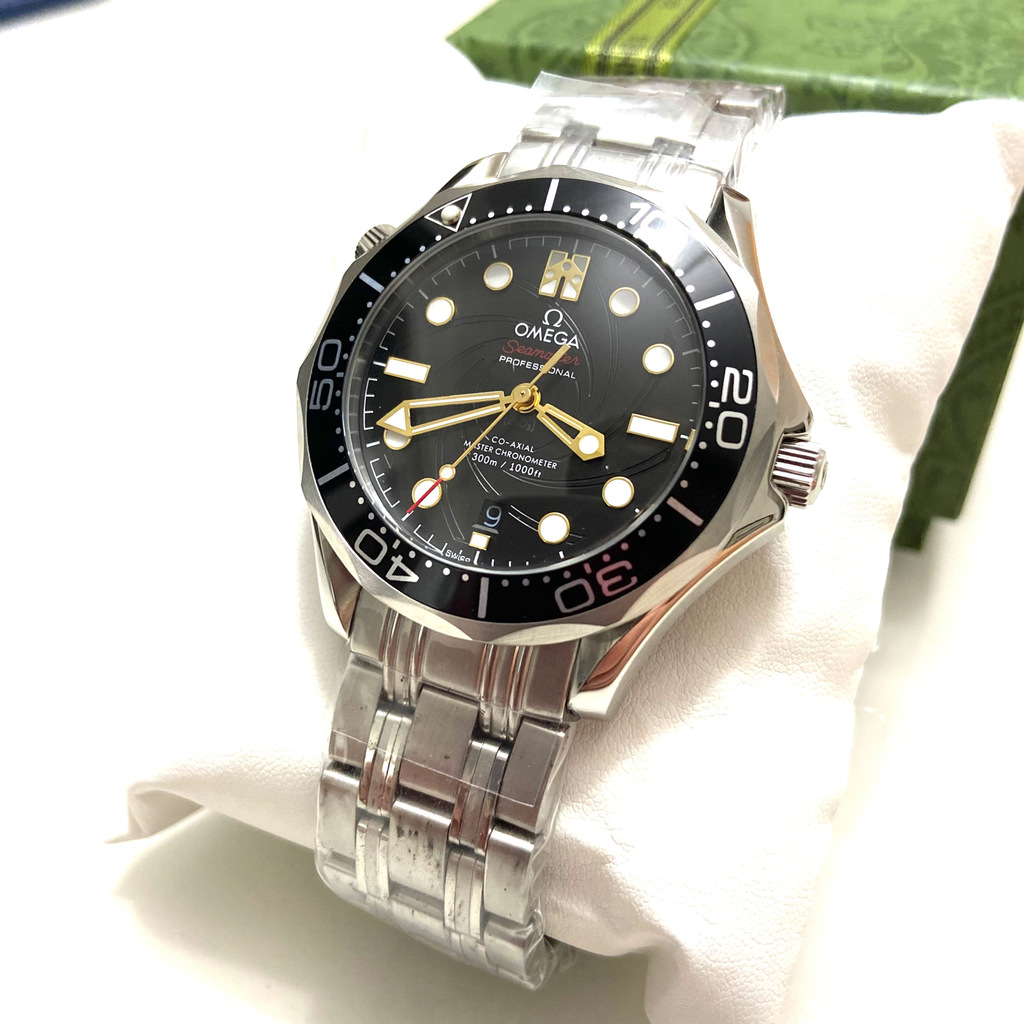 Omega Seamaster professional automatico, 40mm de diametro, todo 'em aço inoxidável, perfeito acabamento, ponteiros dourados, marca 007 dourada, todas as marcações e logos da omega. Relógio de alta qualidade