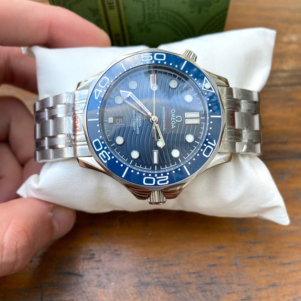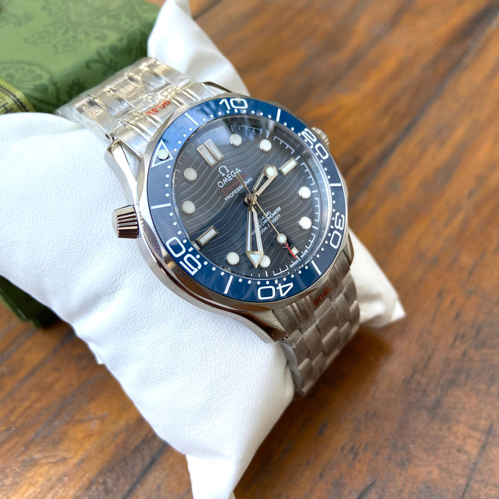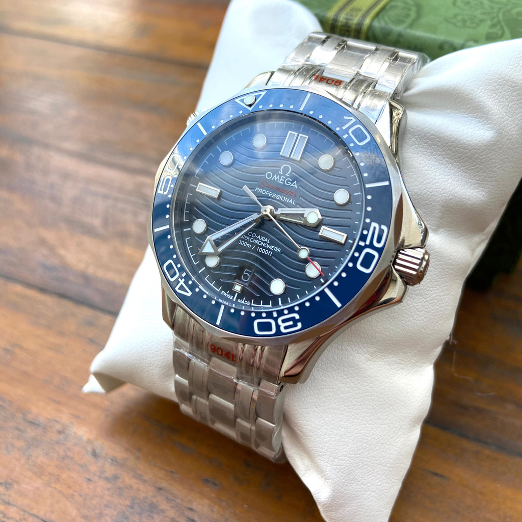 Omega Seamaster diver 300 Azul Automatico. Bezel em ceramica, todo em aço inoxidável 904l, todas as marcações e logotipos da marca, 41mm de diametro. Maquinario com data. Alta qualidade.
