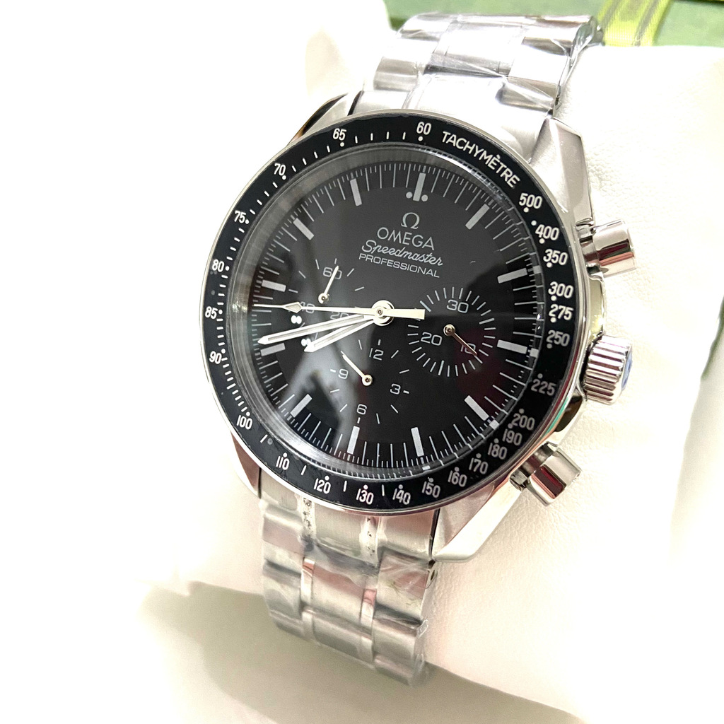 Omega speedmaster função cronografo, relógio todo em Aco inoxidavel com todas as marcações e riqueza de detalhes da omega, 43mm de diâmetro, bezel e fundo pretos. Alta qualidade, padrão devonwatch.