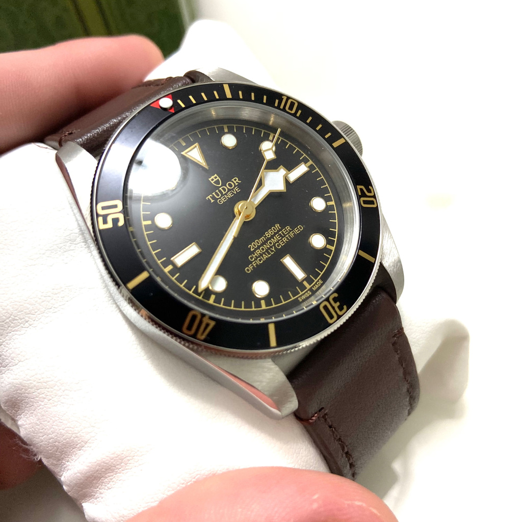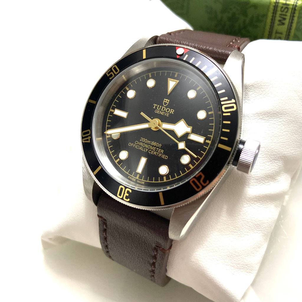 Tudor Black Bay automatico pulseira em couro, versão nova 58, 41mm de caixa, Todo em aço inoxidável no fecho e caixa, ponteiros dourados, bezel giratorio, pulseira em couro com todas as marcações e logotipos da tudor no fecho e relógio em geral. Alta qualidade para pessoas exigentes.