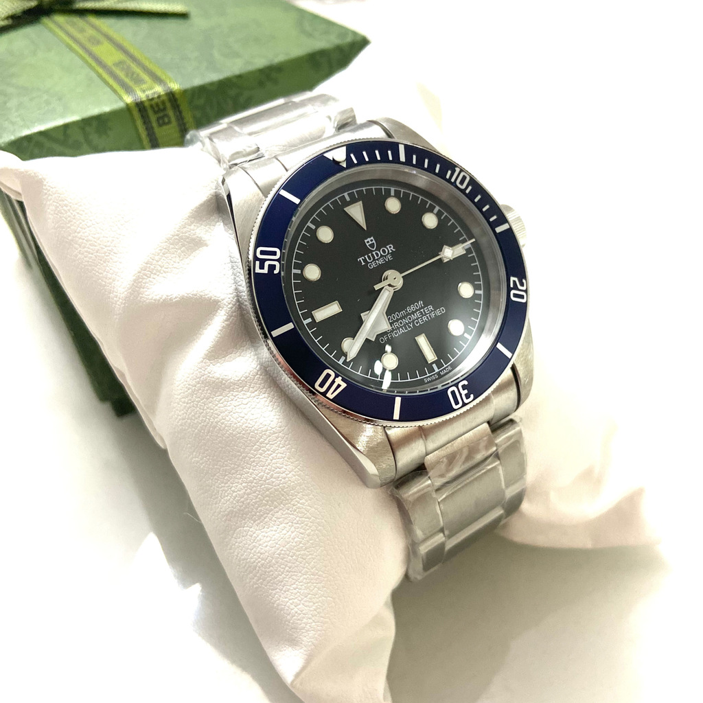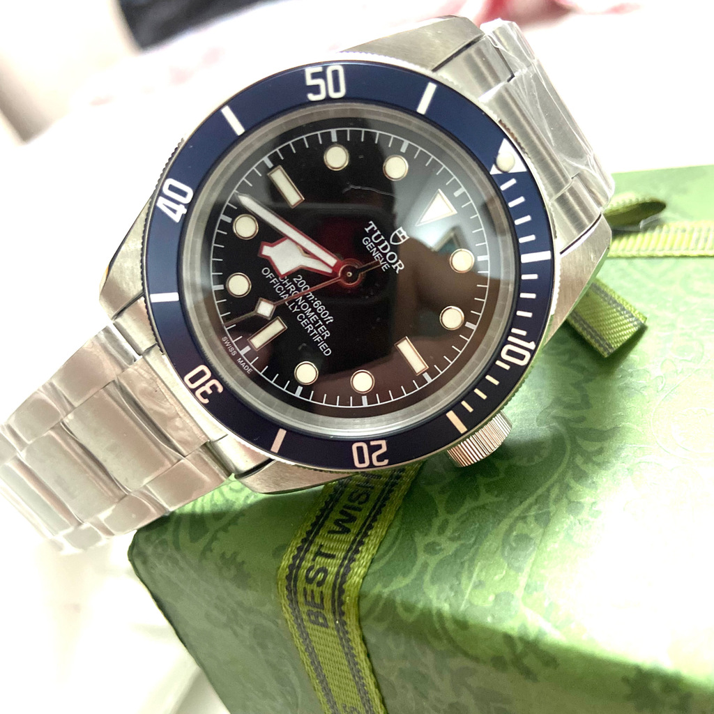 TUDOR Black bay automatico com bezel Azul, todo em Aco inoxidavel, todas as marcações e logos da tudor, riqueza de detalhes, 41mm de diametro, heritage black bay blue. Relógio de alta qualidade.