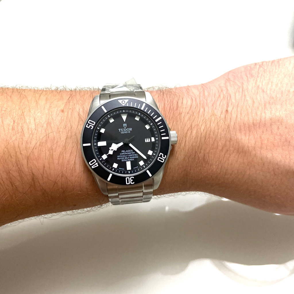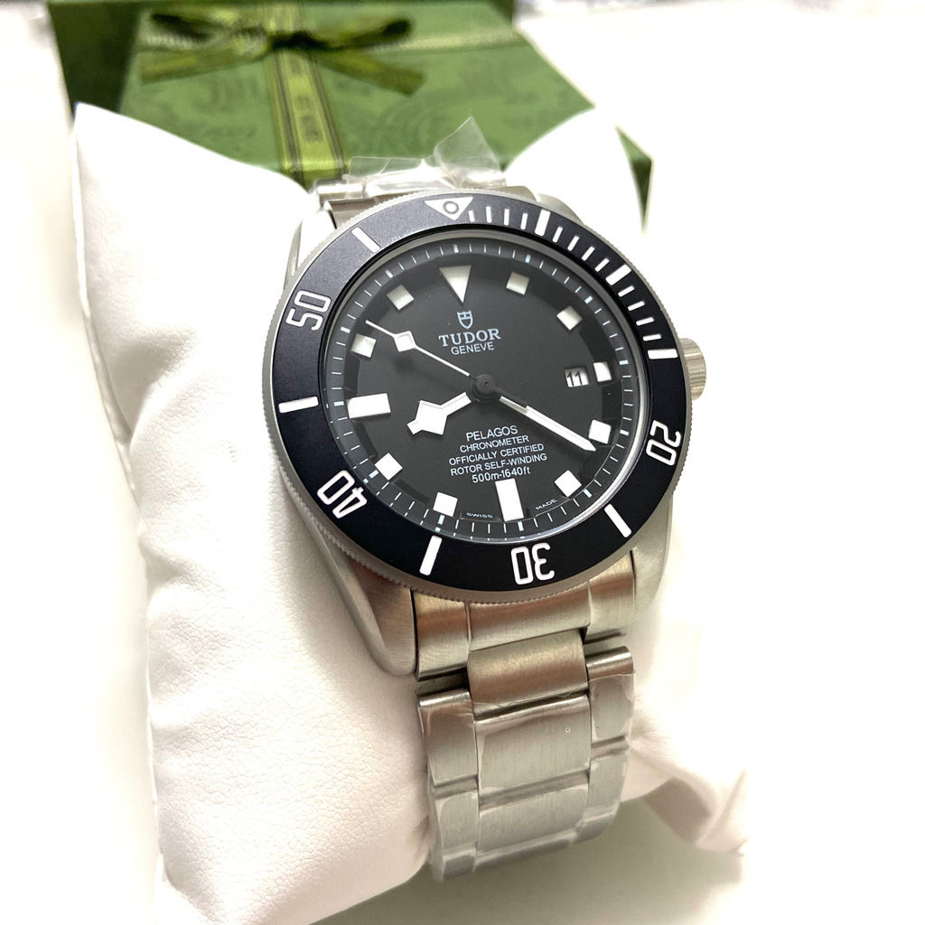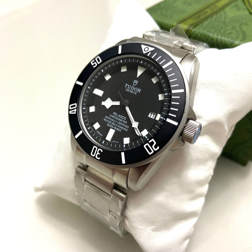 Tudor Geneve Pelagos automatico, todo em aço inoxidável, vidro em safira, todas as marcações e logotipos da Tudor, 42mm de diametro, bezel giratorio com números grafiados, maquinario automatico com data. Relógio de alta qualidade.