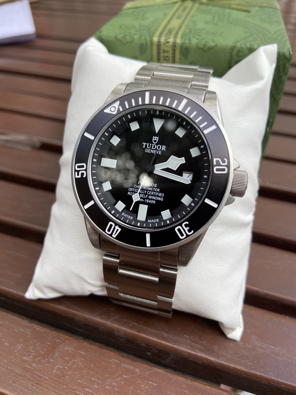 Tudor Pelagos Black Automatico 42mm de diametro, Todo em aço inoxidável 904l, todas as marcações e logos da Tudor, bezel giratorio com números grafiados. Relógio de alta qualidade, padrão devonwatch.
